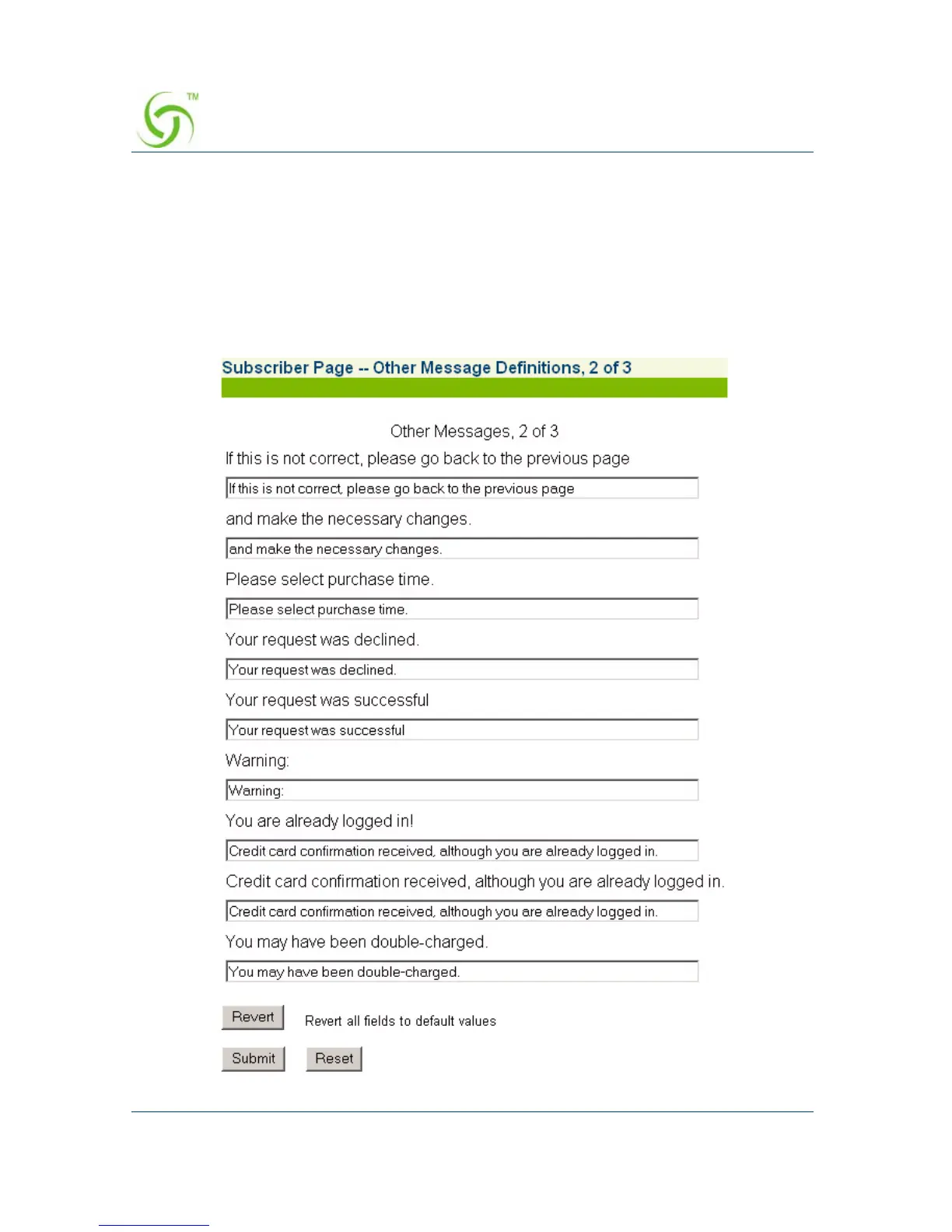 2. Enter the definitions you want for each subscriber message in the corresponding