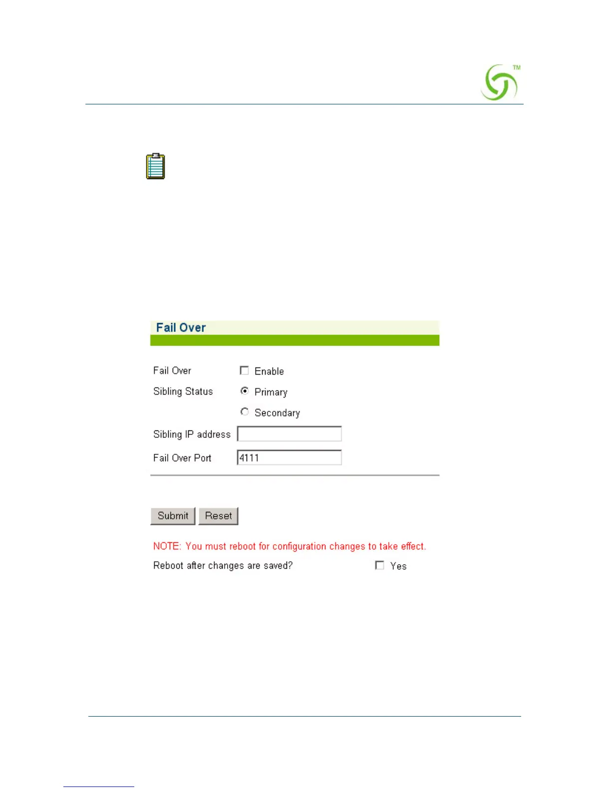 3. If you enabled Fail Over, define the Sibling Status (Primary or Secondary).
