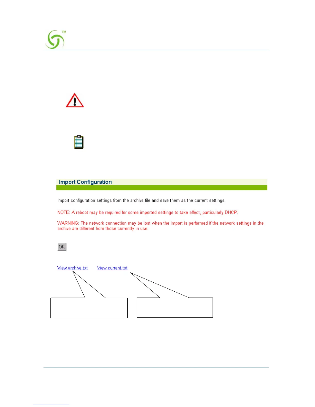 Importing Configuration Settings from the Archive File {Import}