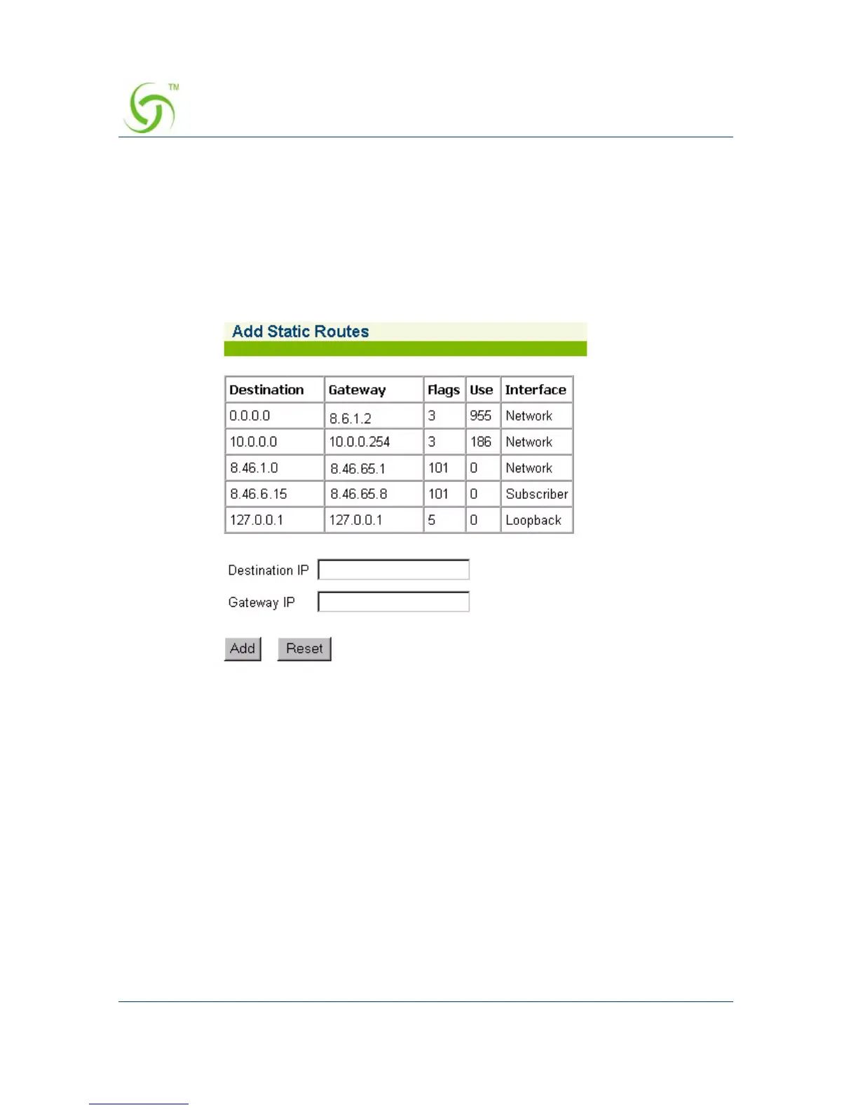 4. Click on the Add button to add this route to the routing table, or click on the