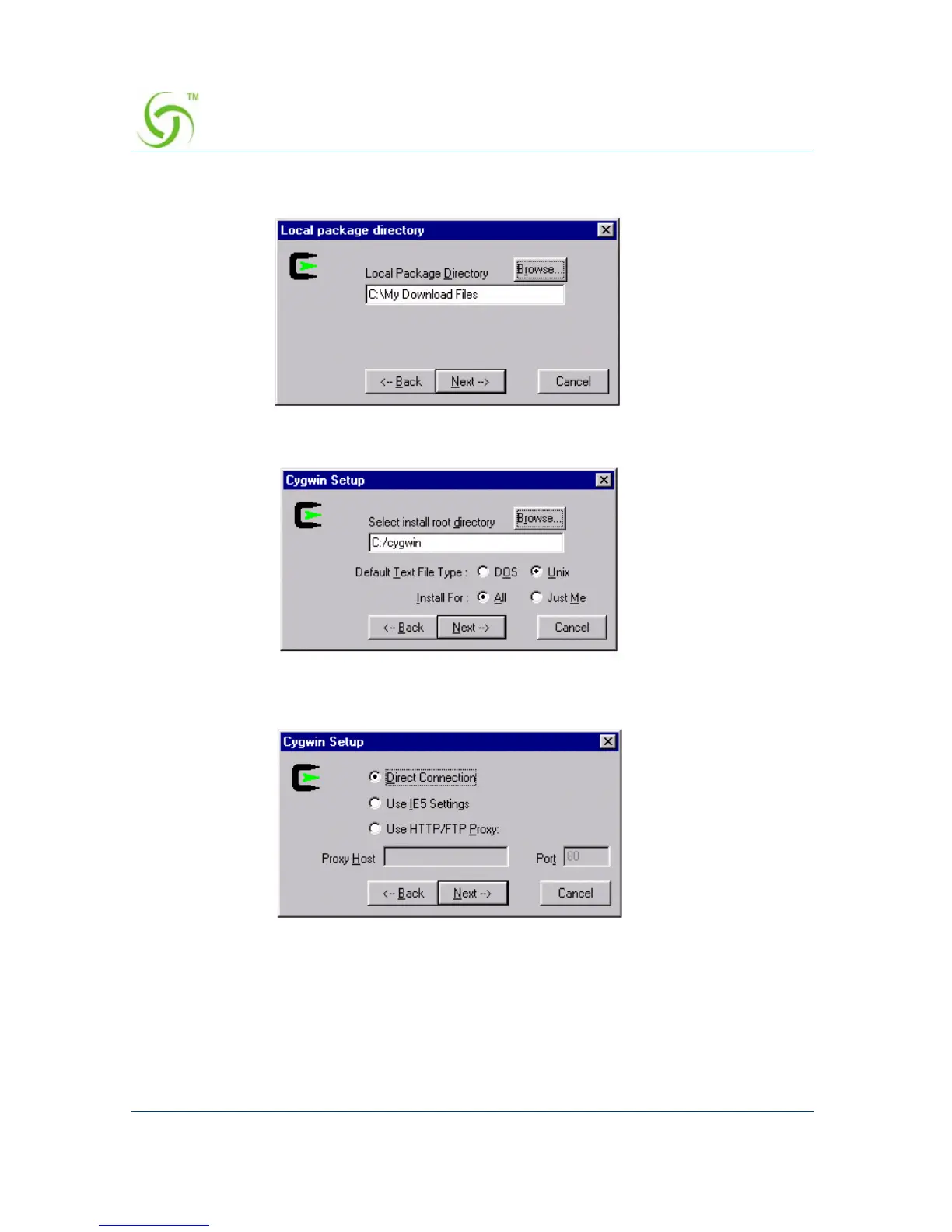 Click on the Next button to display the next setup screen.