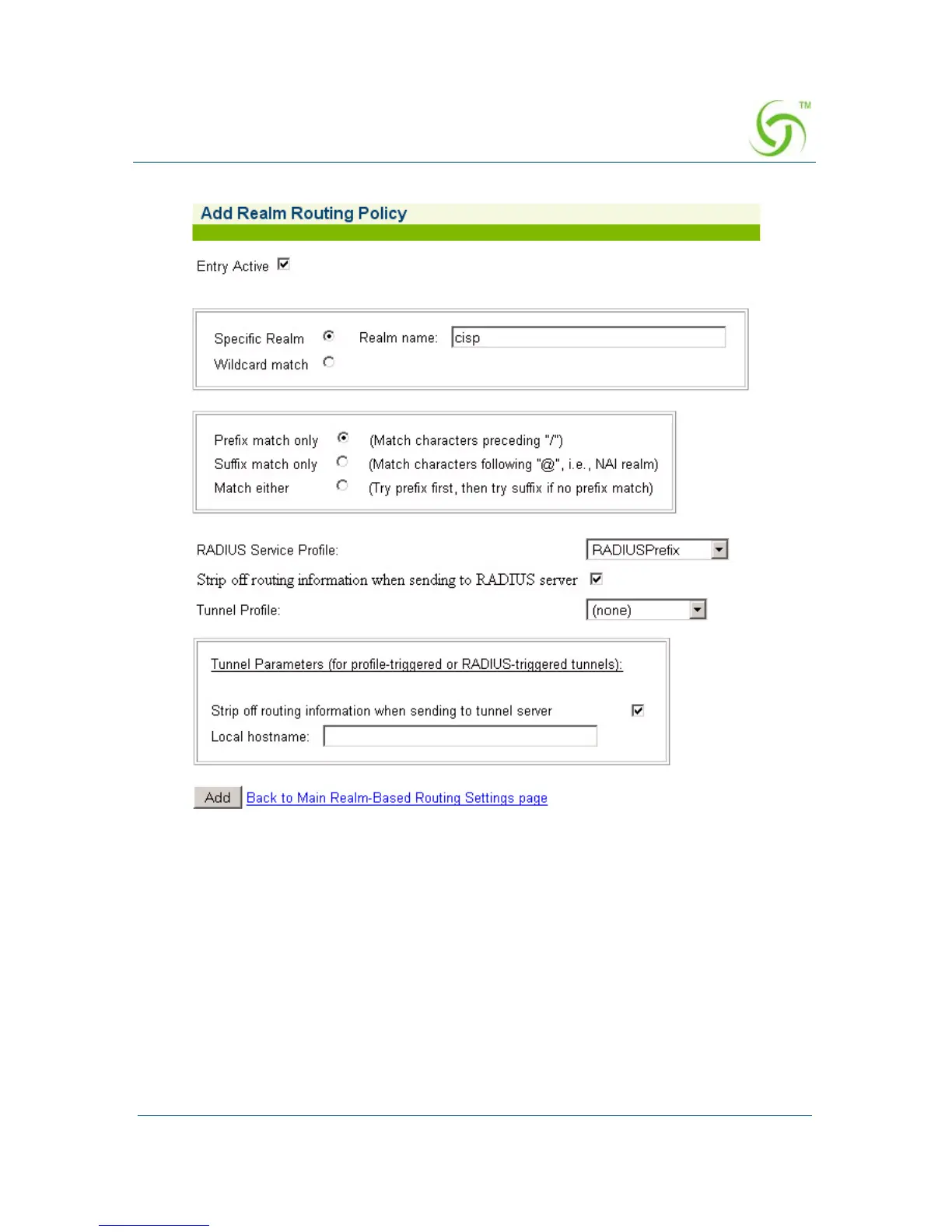 “username@tcisp.com”. Since this policy references a tunnel profile, no RADIUS