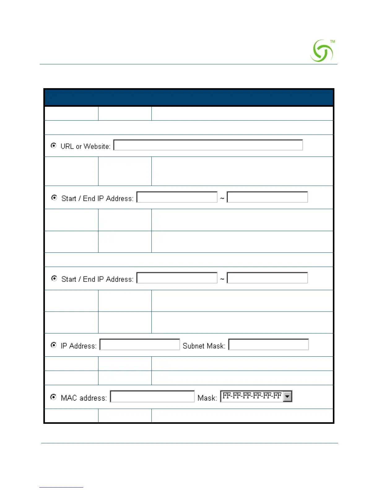 Subnet Mask Empty Enter the subnet mask of you want to pass through.