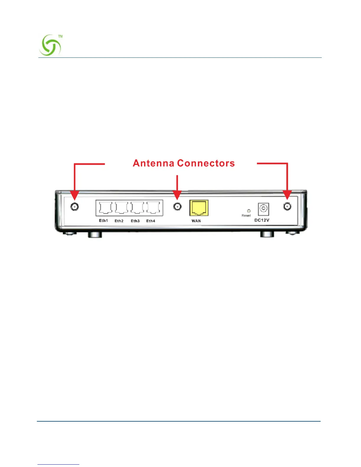 The Wireless Connect Gateway provides three antenna connectors on the rear of the