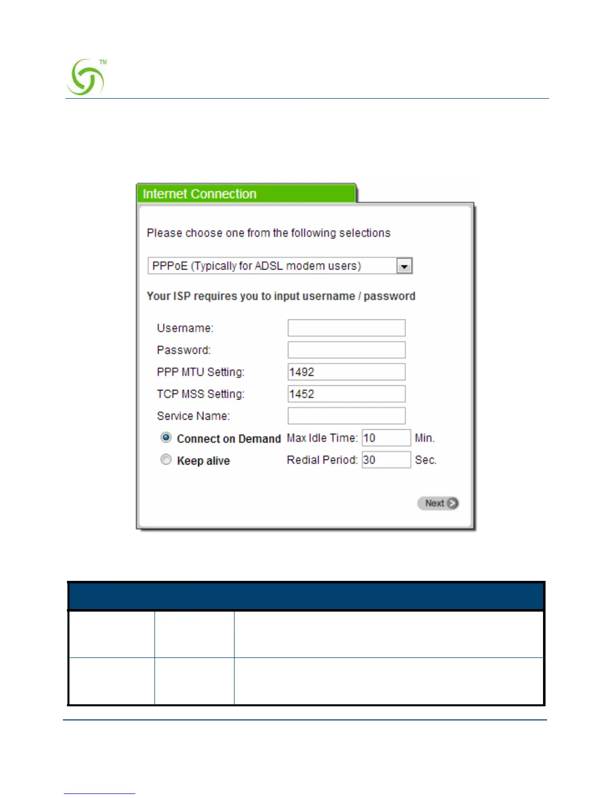 If “ PPPoE ” is selected, then this screen will appear. Enter the username, password