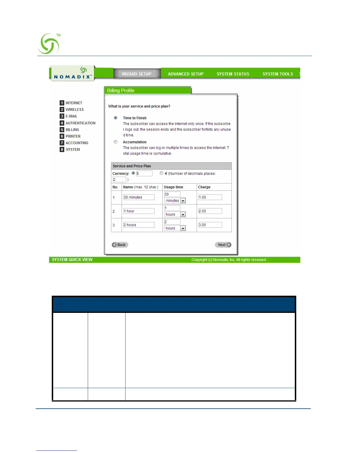 Figure 23 Billing Profile Setting Screen