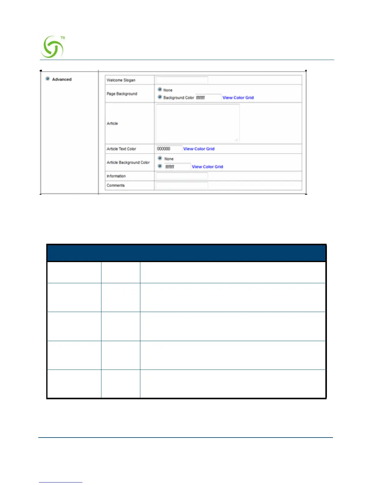 Article Empty The article allows the administrator to input a paragraph in