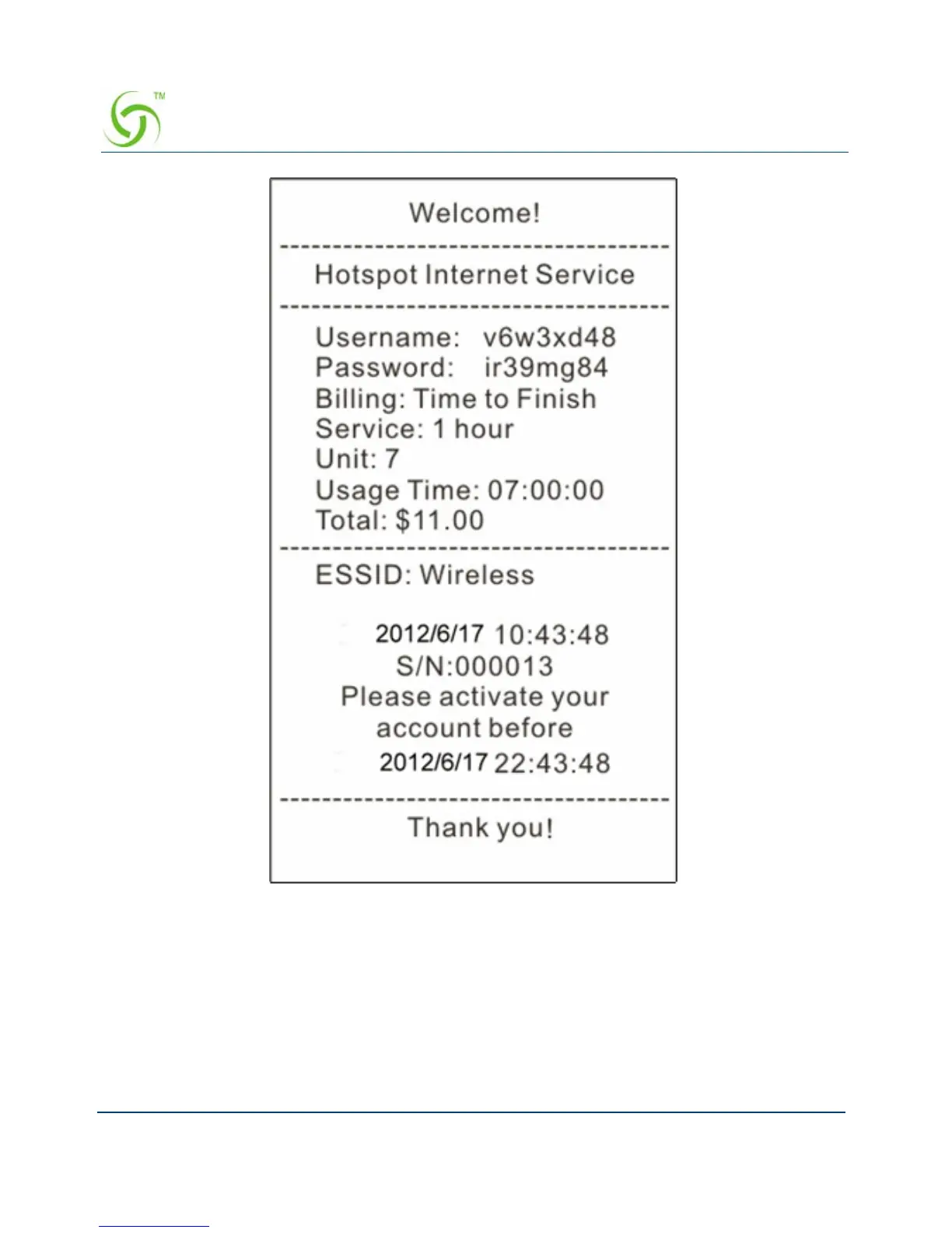 Figure 68 Account Printout
