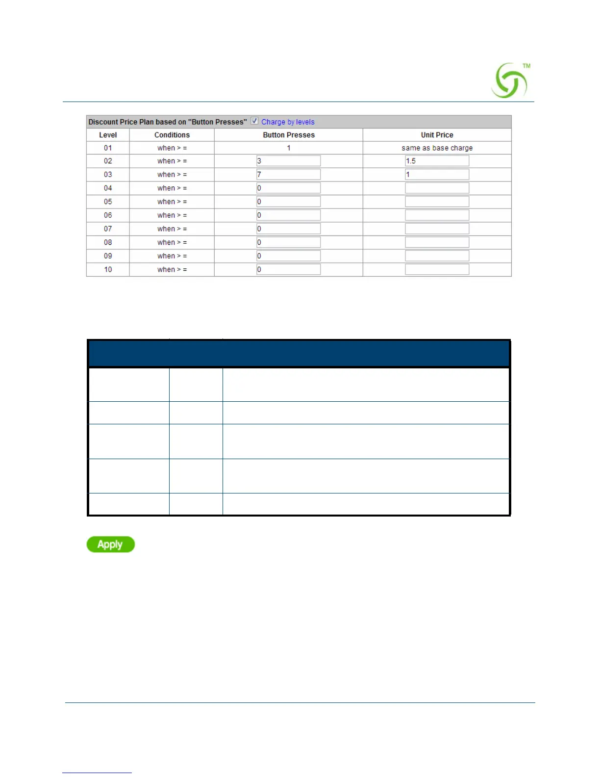 Unit Price - Enter the amount of charge level.