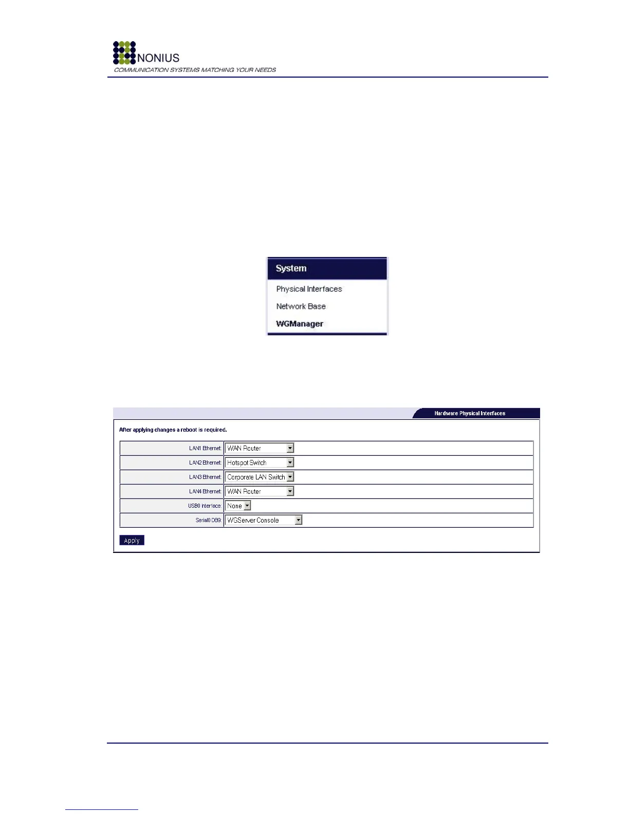 Ethernet, USB and Serial interfaces, the activation or deactivation of NAT and the configuration of