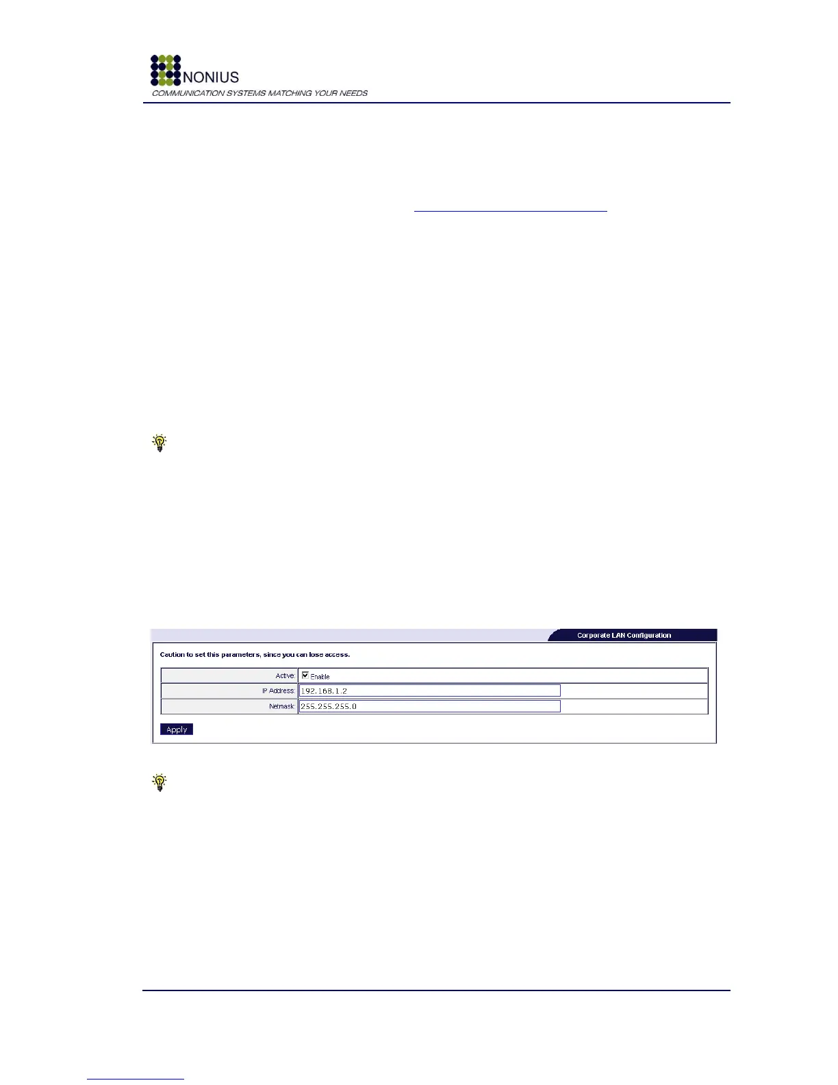 Use this menu for configuring the network parameters of the interfaces defined as „Corporate