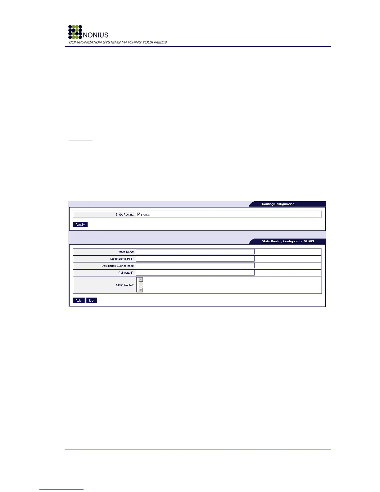 The routing submenu can be used to add static routes to the WGS5000’s routing table.