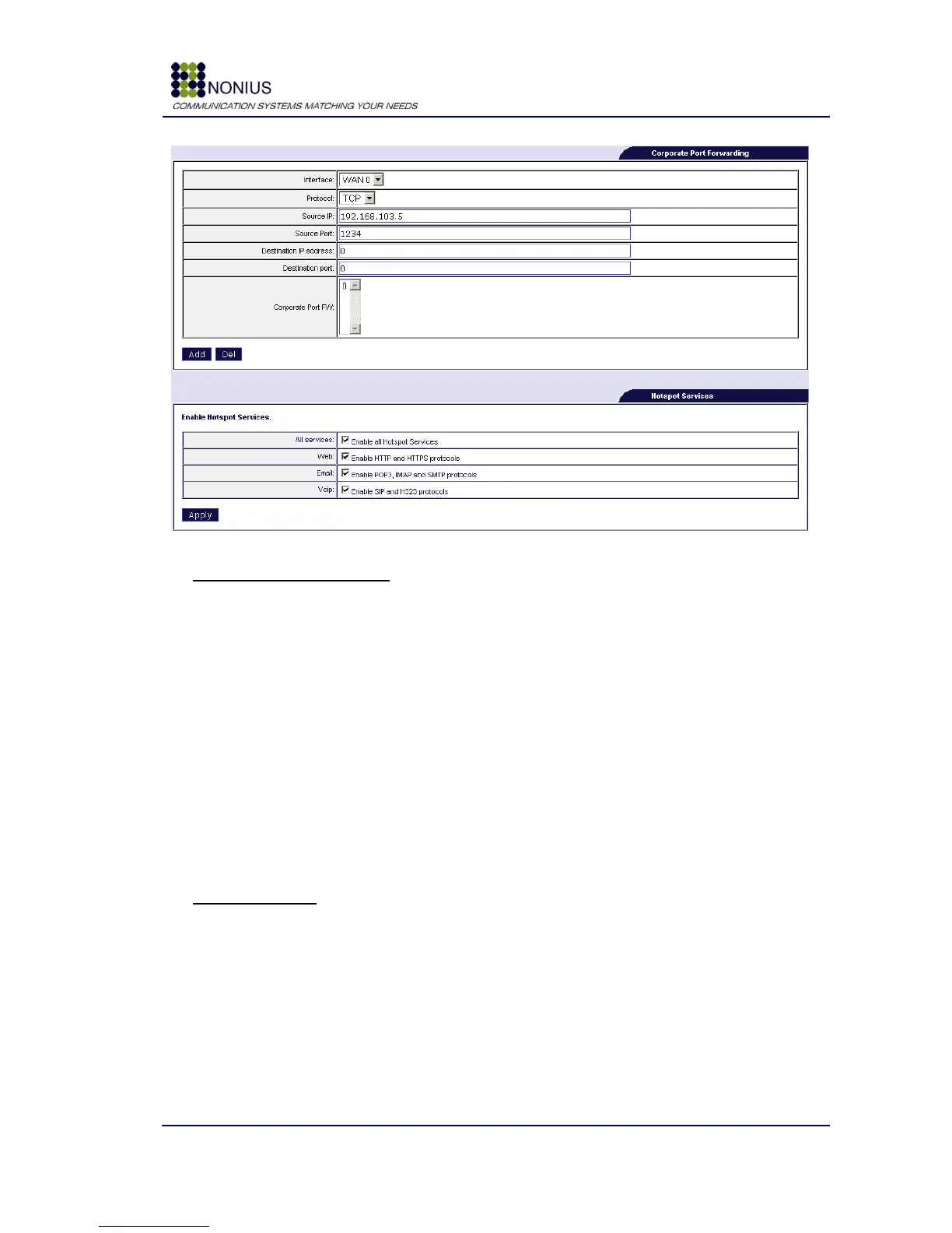 Figure 26 - Corporate Port forwarding, Hotspot Services