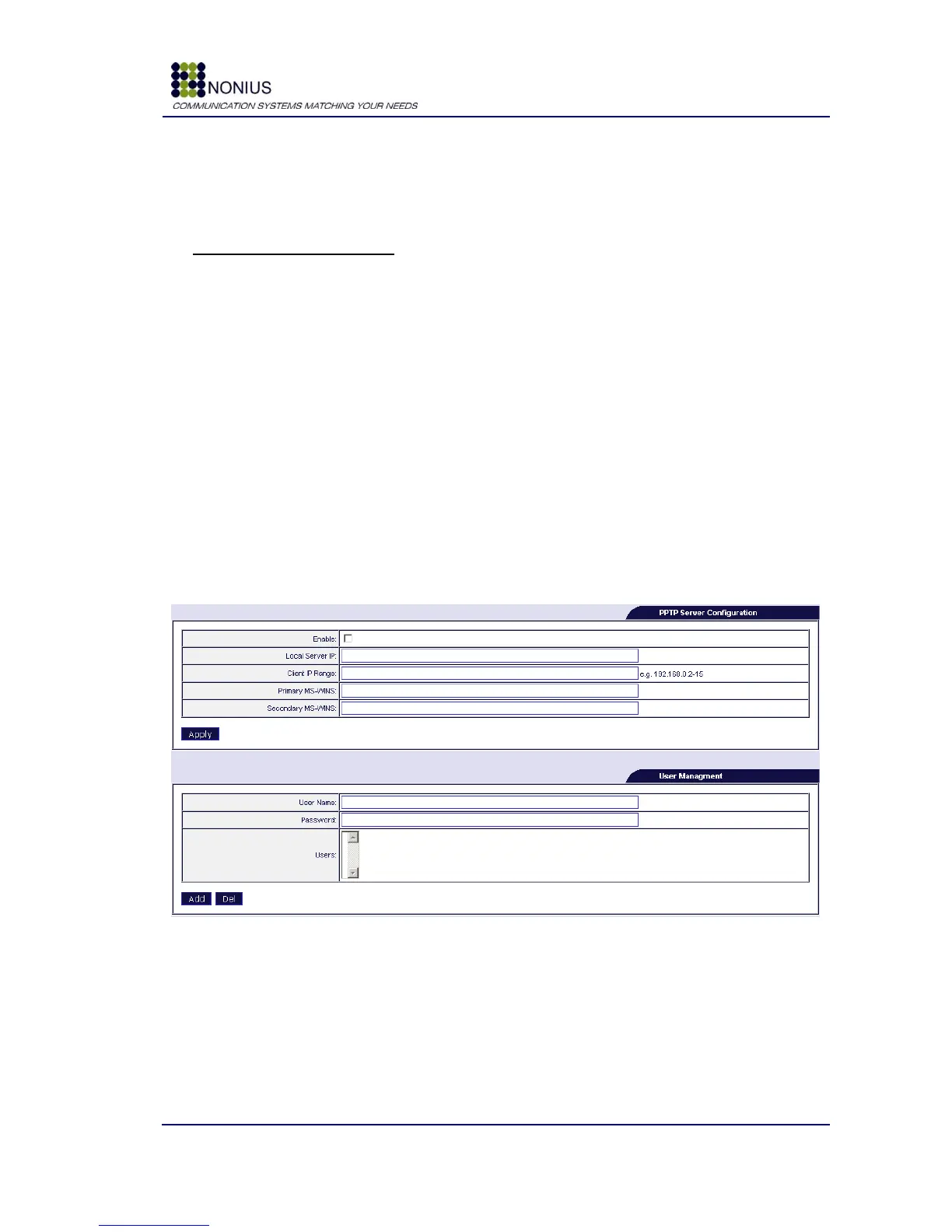 Enable: Enables/disables the PPTP server configuration.
