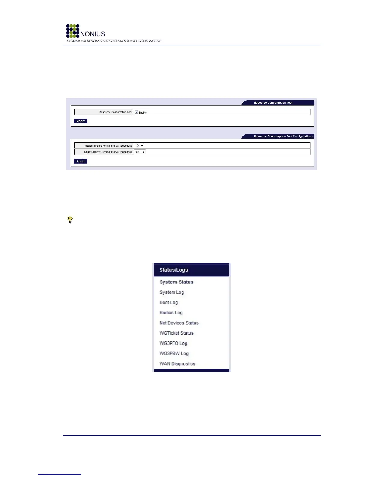 Figure 63: Status/Logs Menu