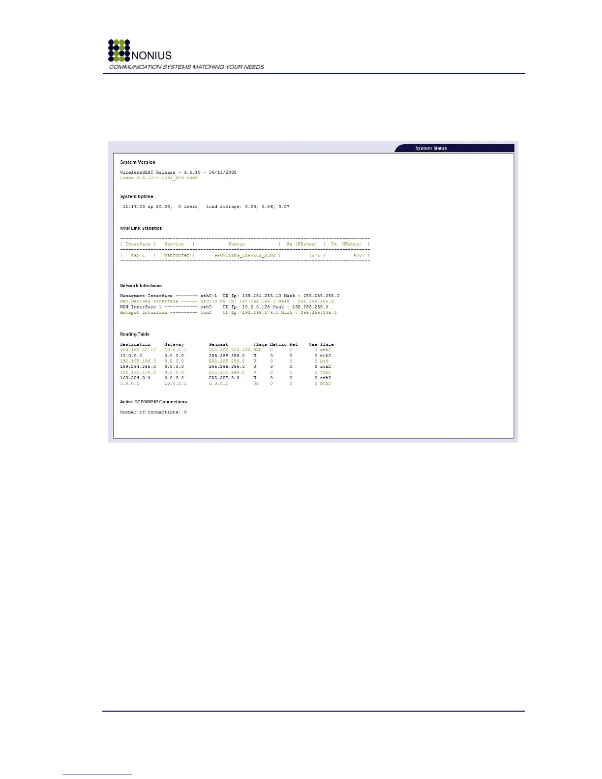 Routing Table: Shows the WGS5000‟s routing table.