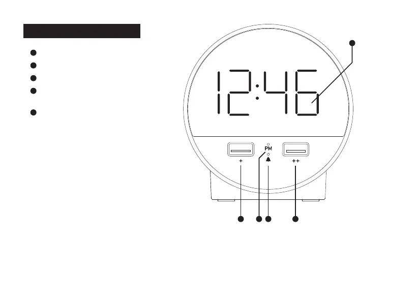 Nonstop Station O - Front Panel Features; Time Display and Indicators; Front USB Charging Ports