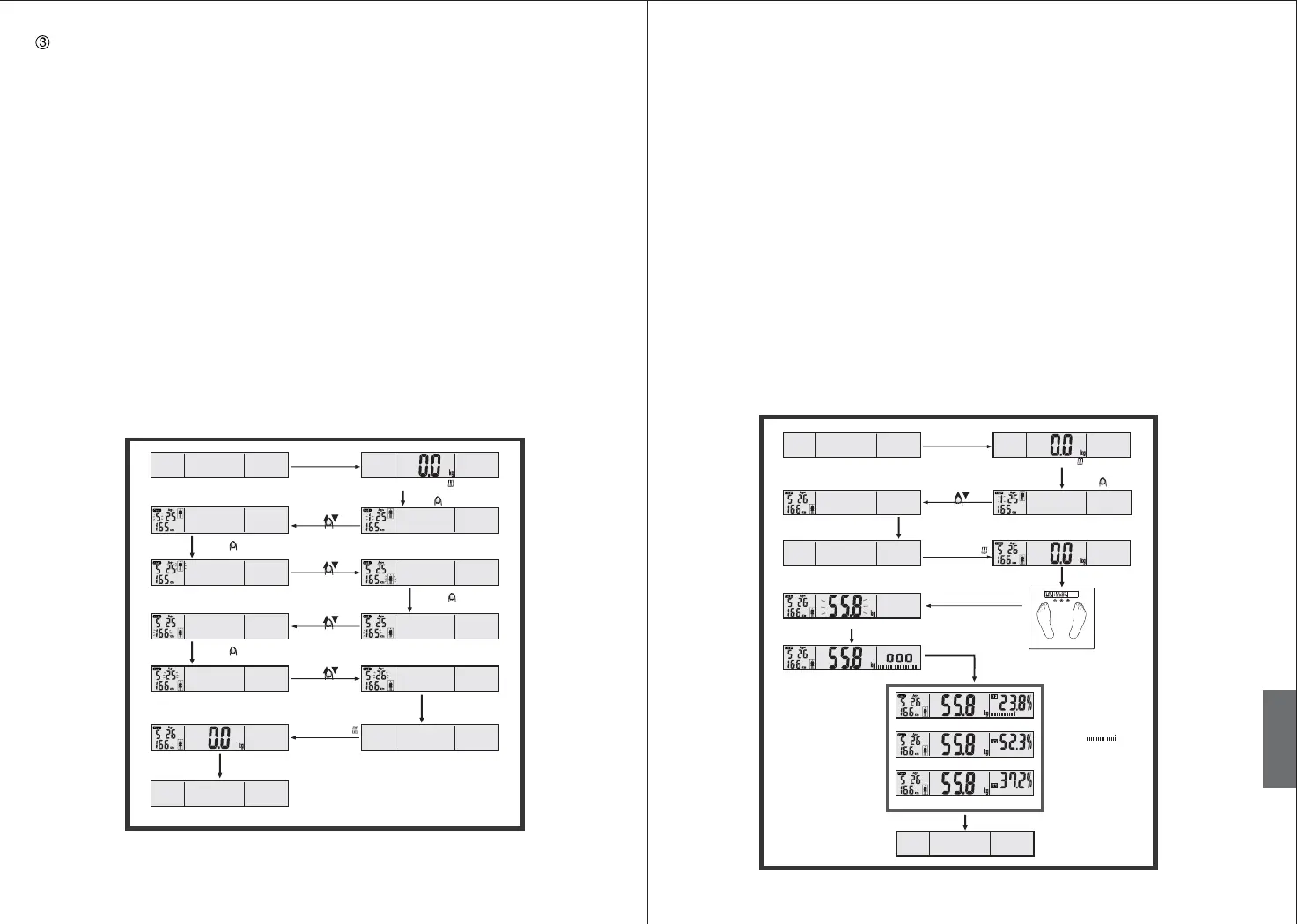 kroppsvæske og muskler. Vektene slås av automatisk når disse verdiene har bli vist.