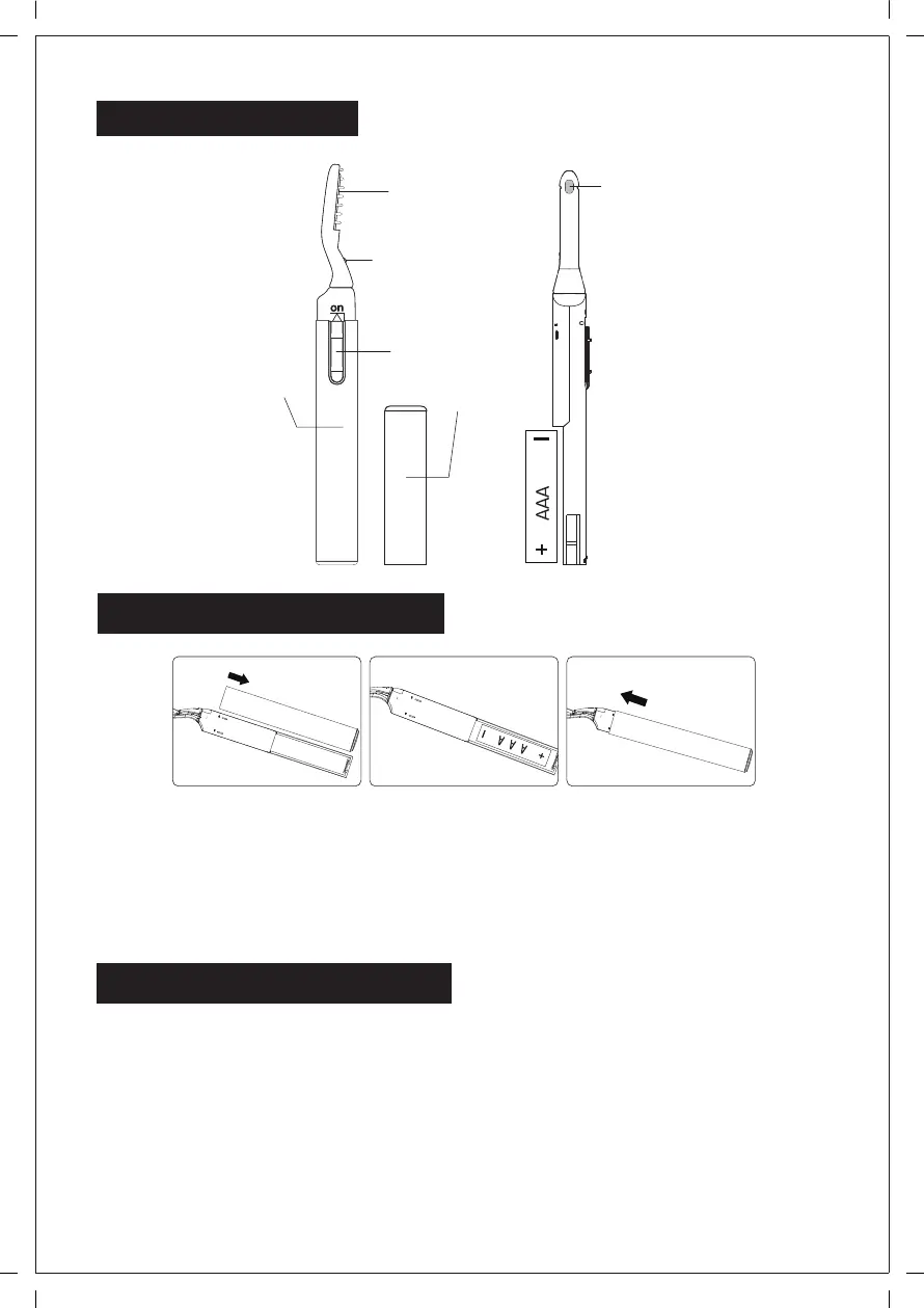 Tryk røret nedad. Sæt 1 stk. AAA-baeri i, og sørg for, at det
