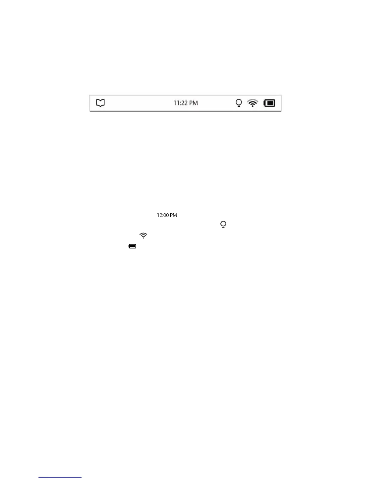 A Status Bar runs along the top of the NOOK touchscreen. The Status Bar looks like this when GlowLight is turned