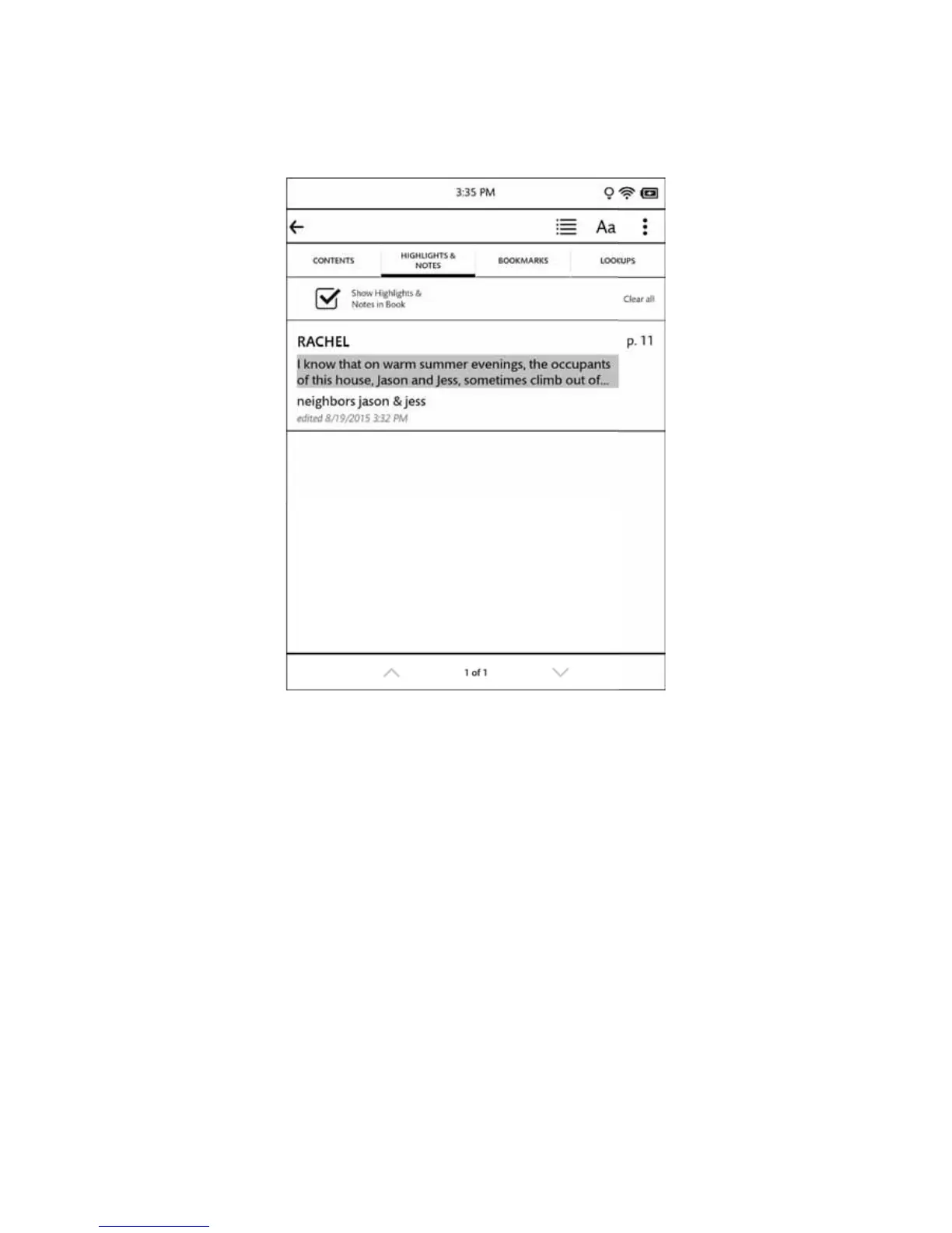 you’re reading. Tap the check box labeled Show Notes & Highlights. Leave the box checked to show Notes & High-