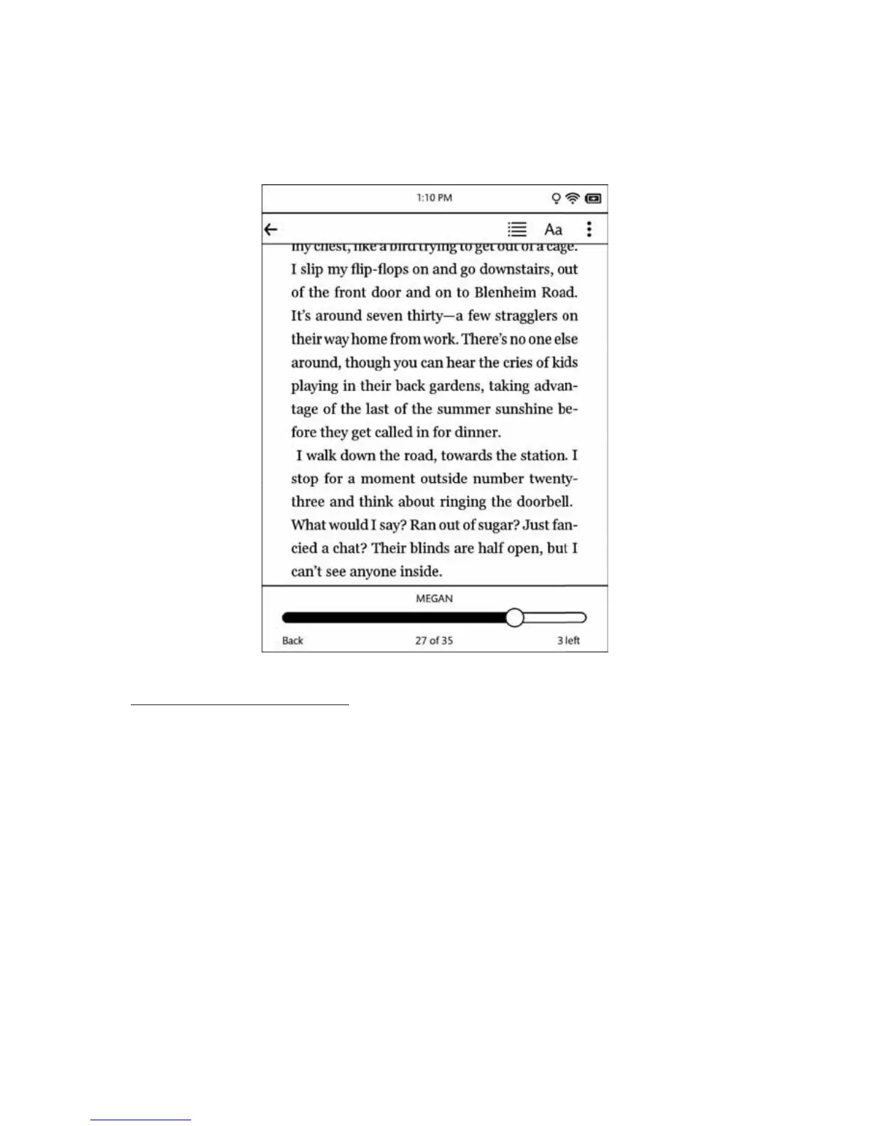 on the right end of the slider bar. If the book is divided into chapters, the slider bar will list chapter numbers and