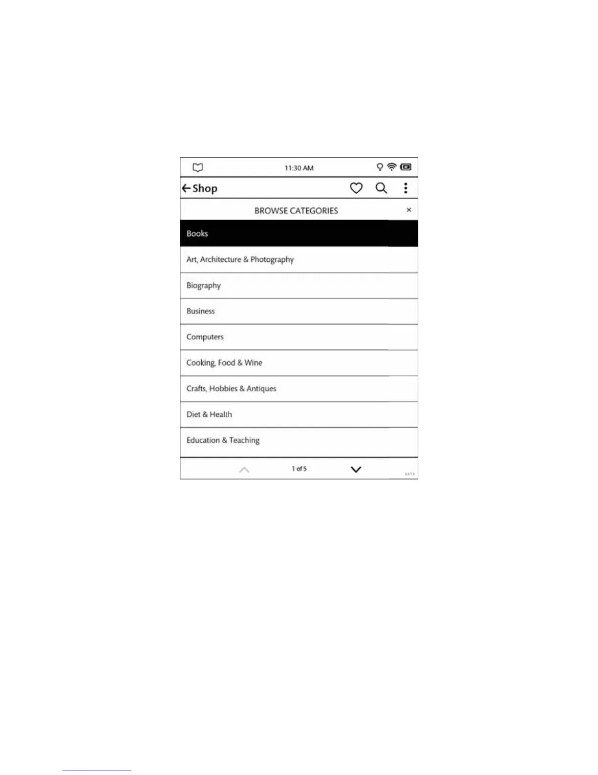Tapping the CATEGORIES link on the Shop home screen displays a list of book categories you can explore.