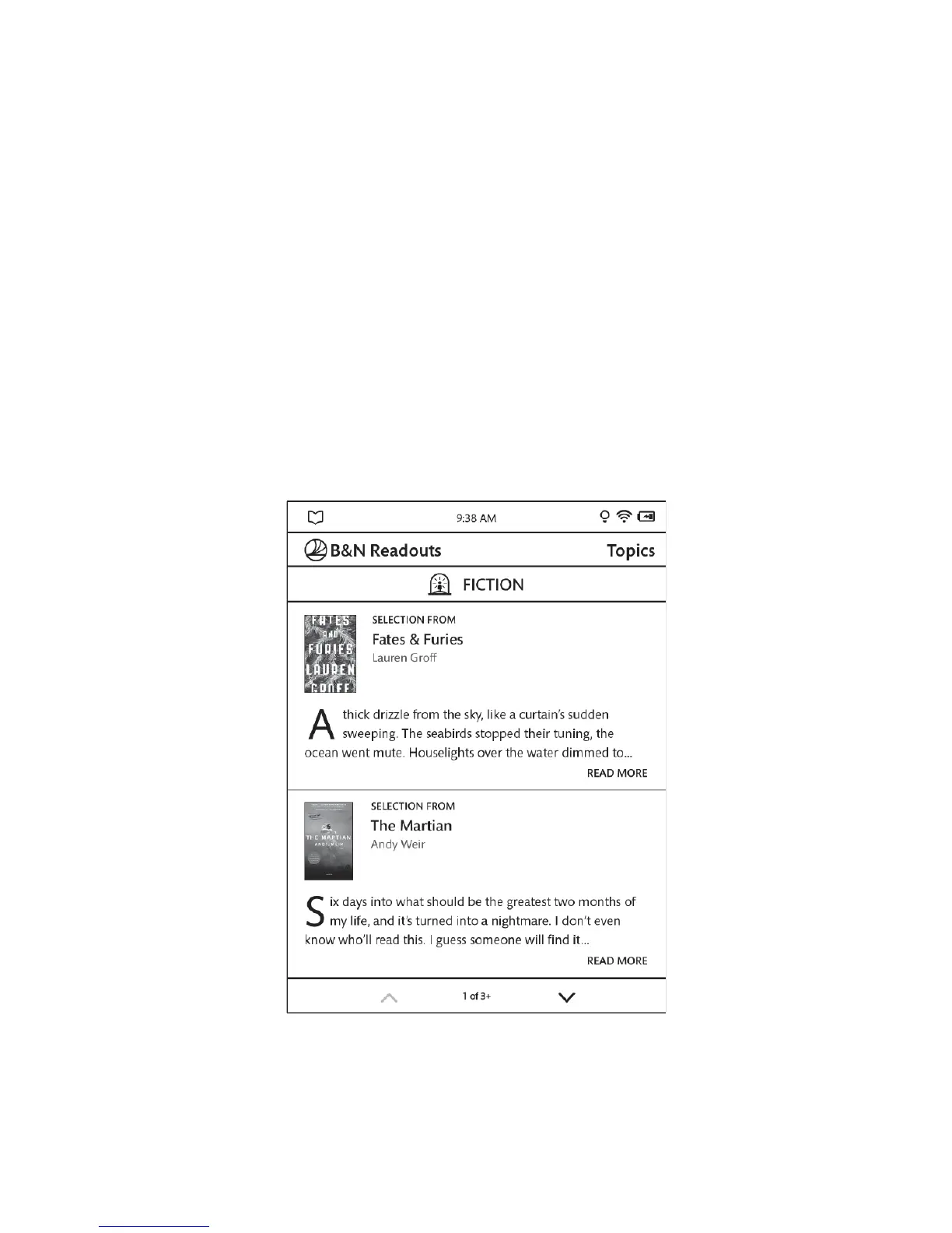 B&N Readouts brings the pleasure of bookstore browsing to your NOOK with a daily selection of quick reads cu-