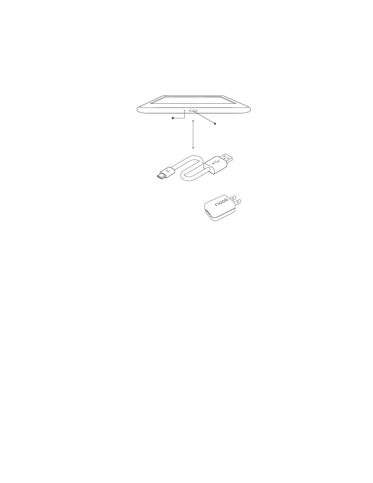 CAUTION: If you are using a power adapter, use only a Barnes & Noble power adapter and custom micro-USB