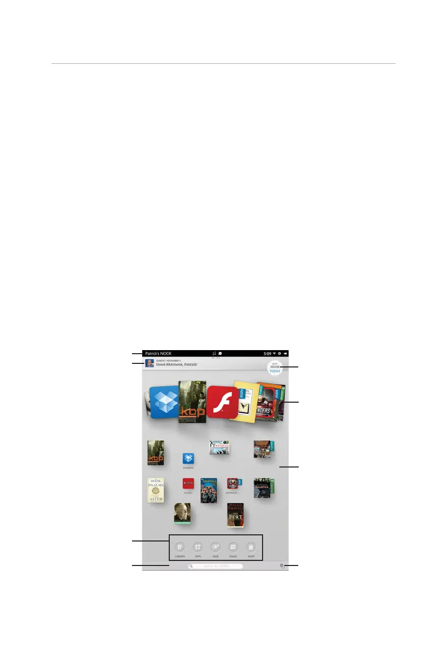 screen. If the NOOK is asleep, pressing the Home button starts the Welcome Back