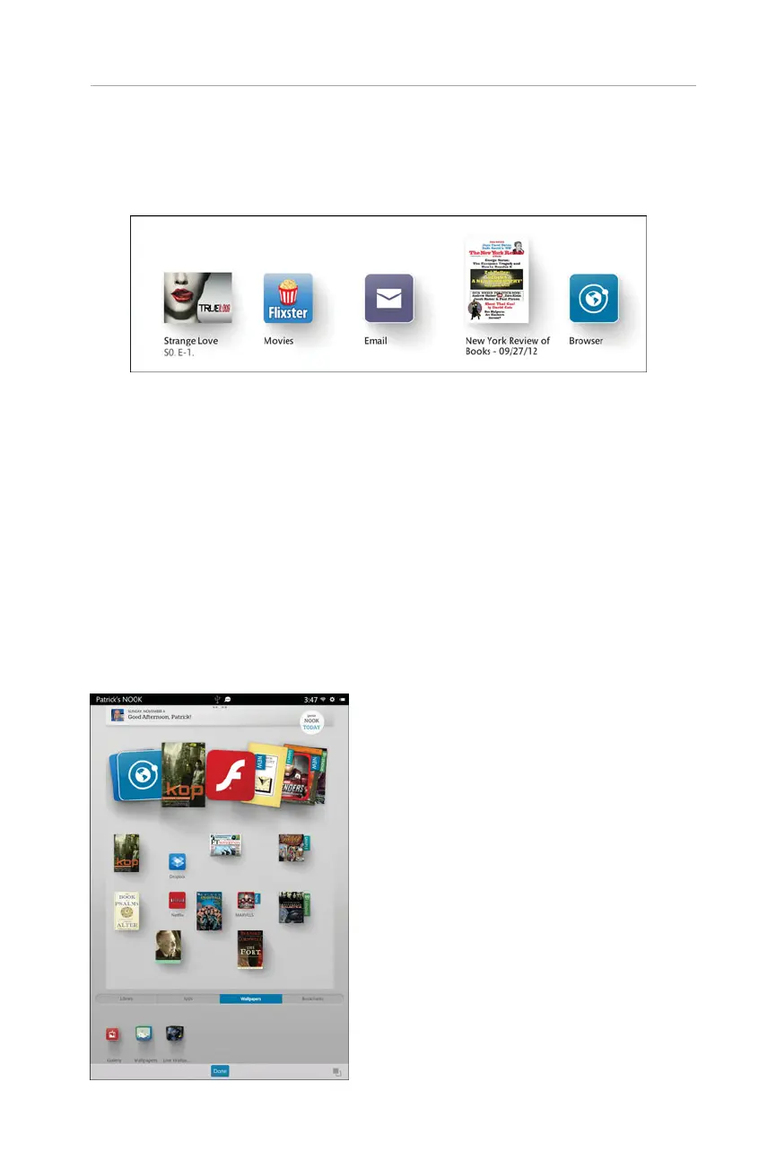 The Home screen enables you to access your library, app, and Internet bookmarks