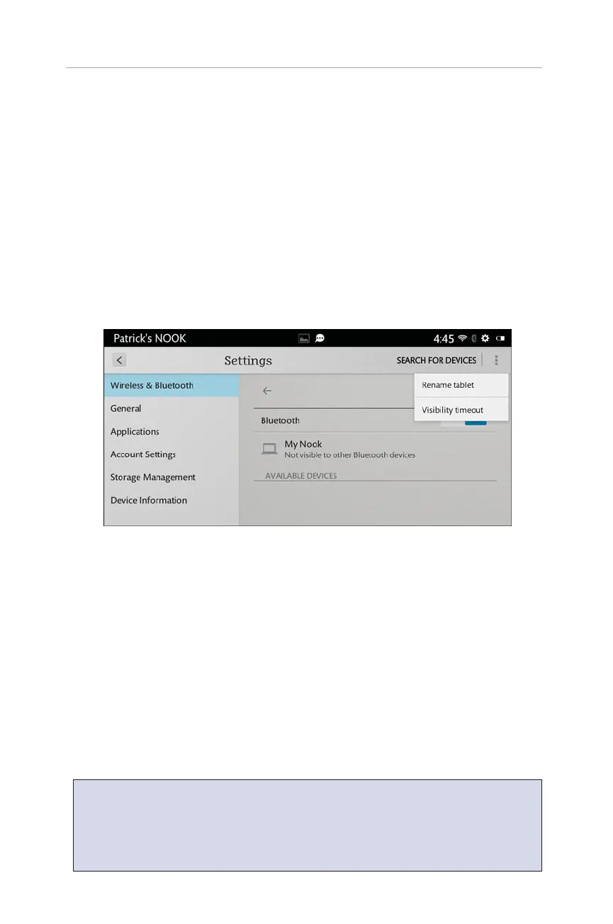 NOTE: To connect a Bluetooth device, make sure you have your NOOK’s