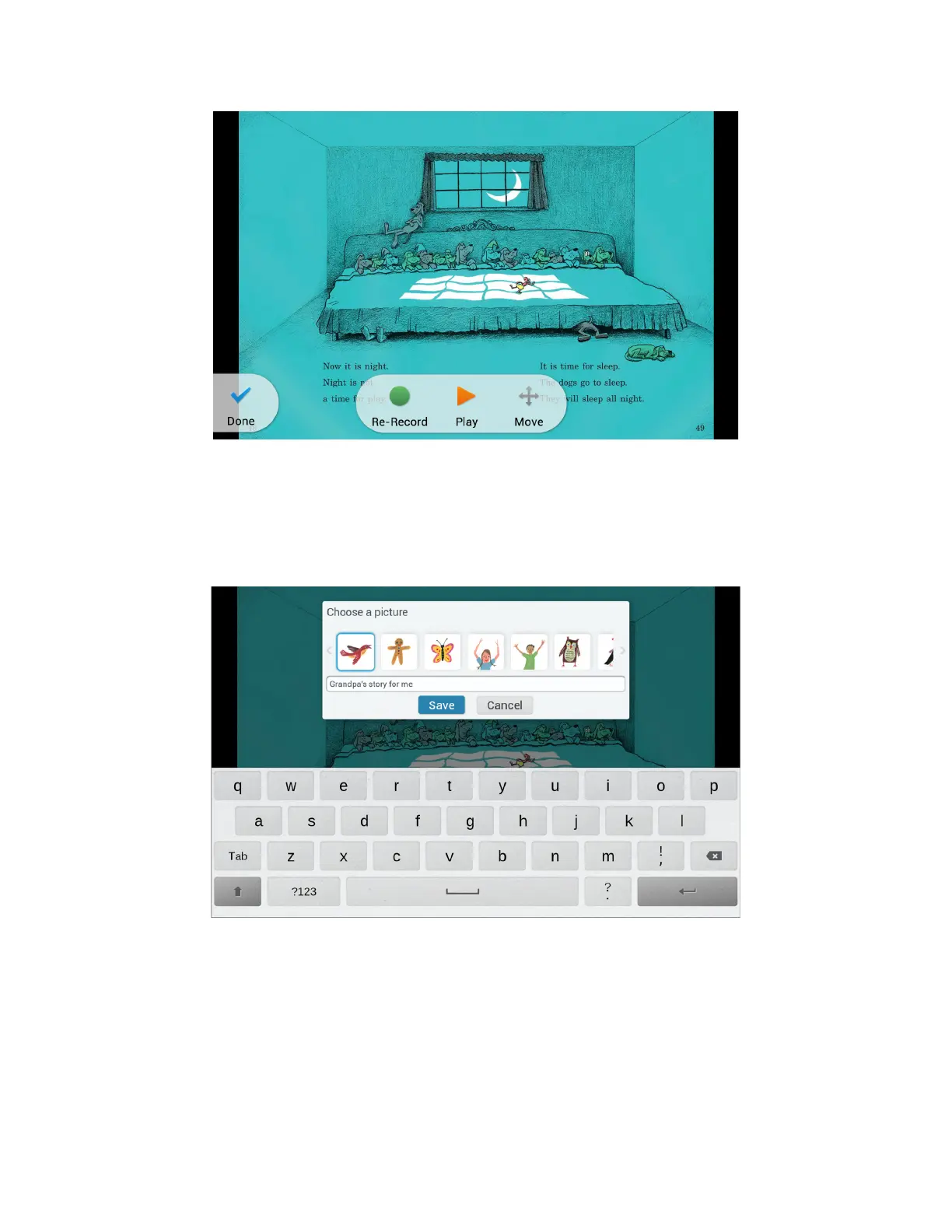 Your NOOK opens a dialog box for giving your recording a title and labeling it with a picture.