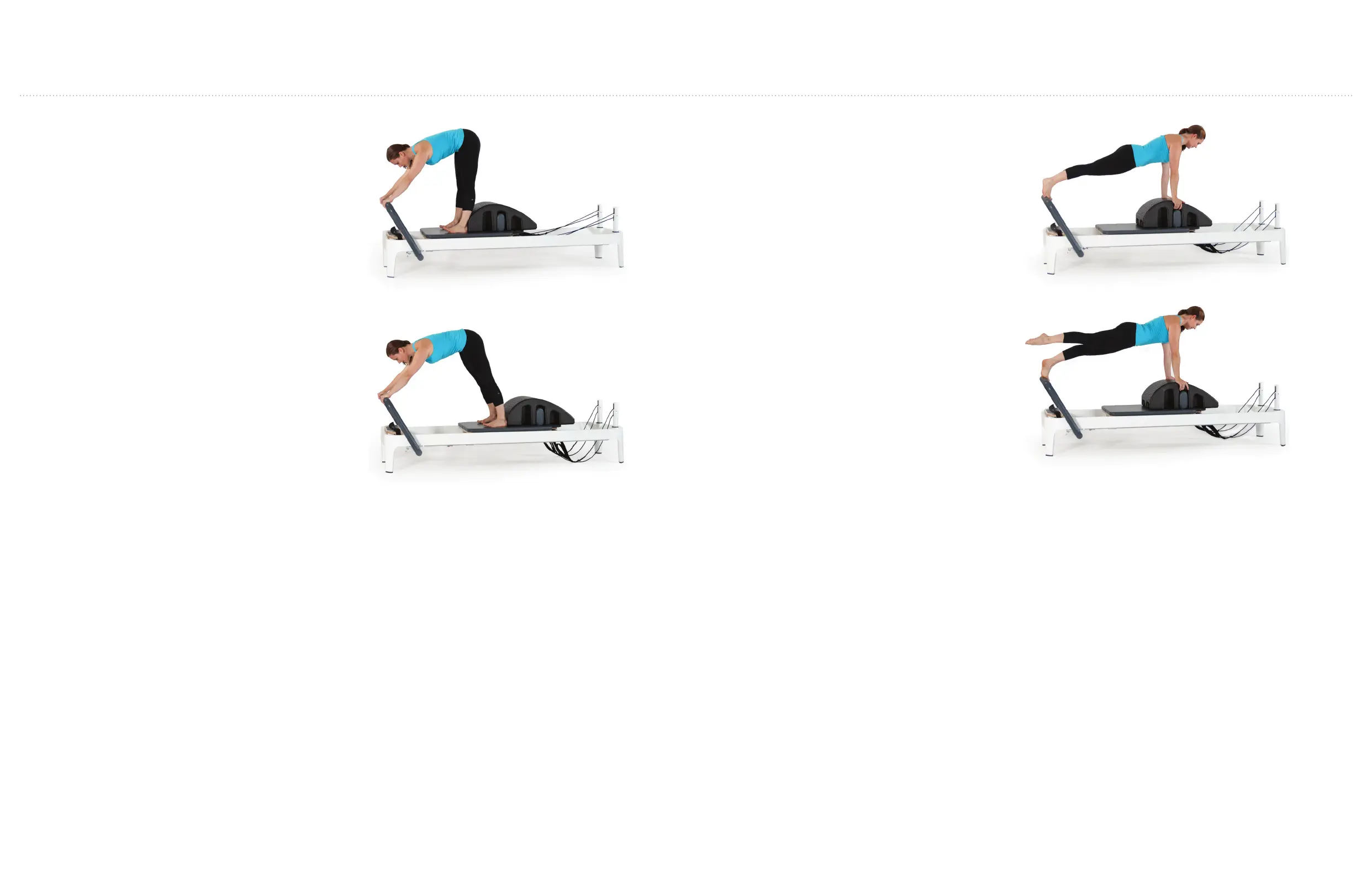 the Reformer by placing the hands on the footbar first then