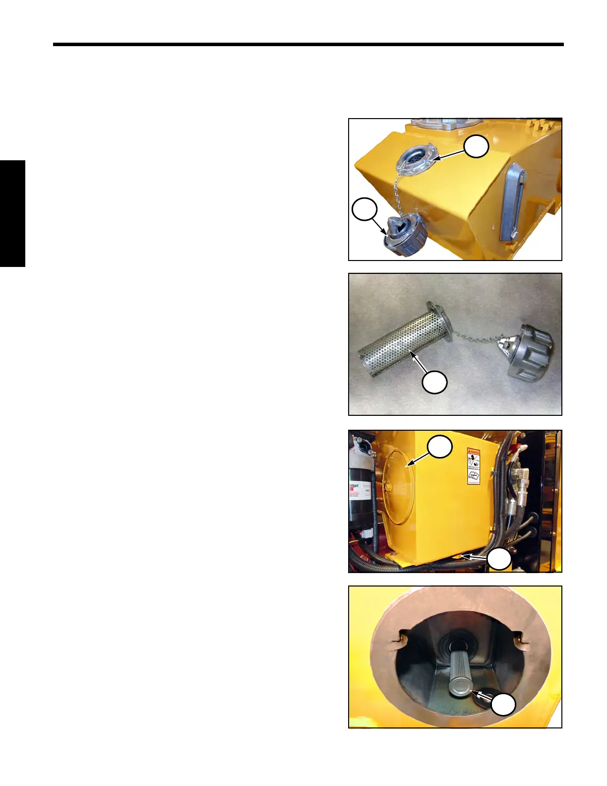 9. Fill hydraulic oil tank. Install fill cap and lock.