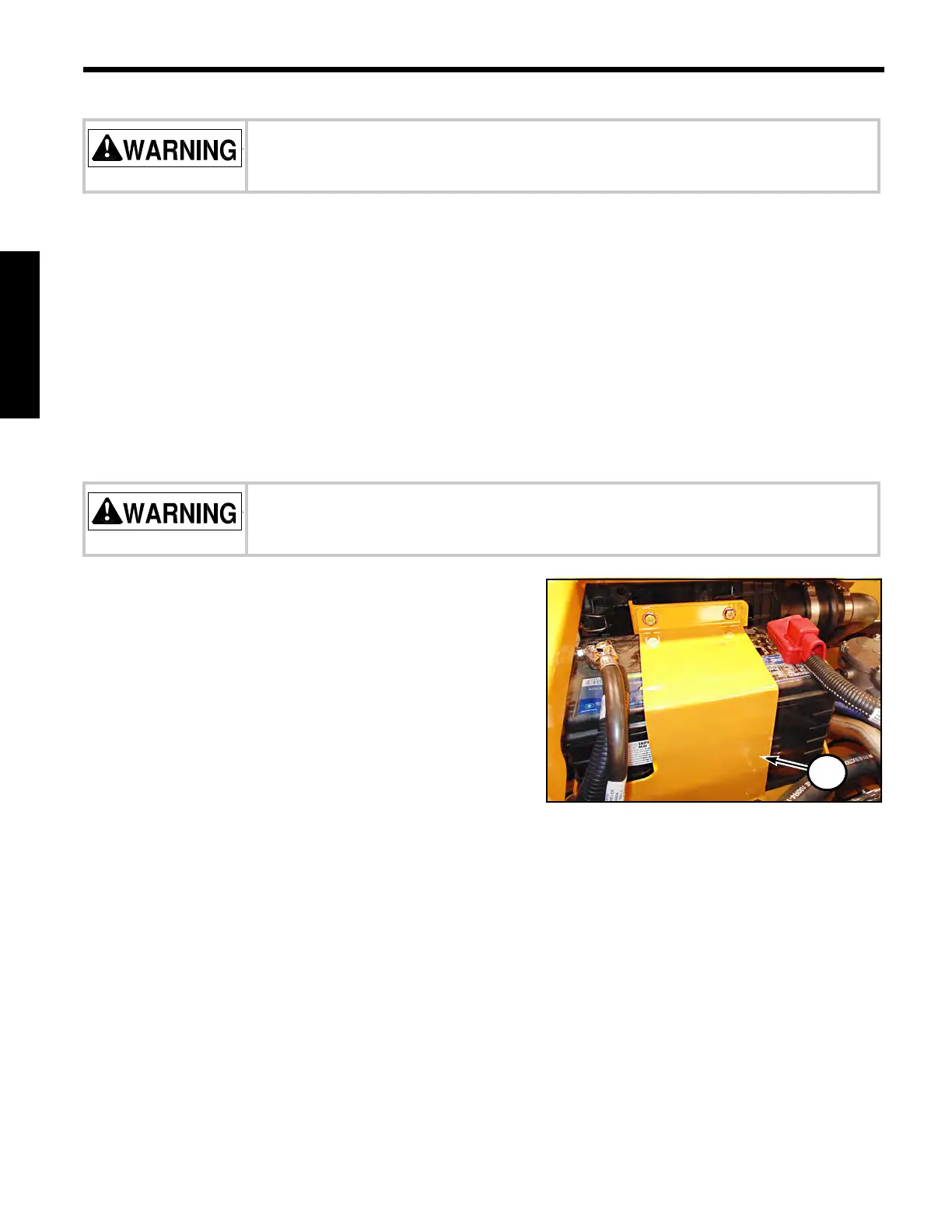 8. Secure new battery in place with bracket. Torque bolts to 34 N•m (25 lb-ft).