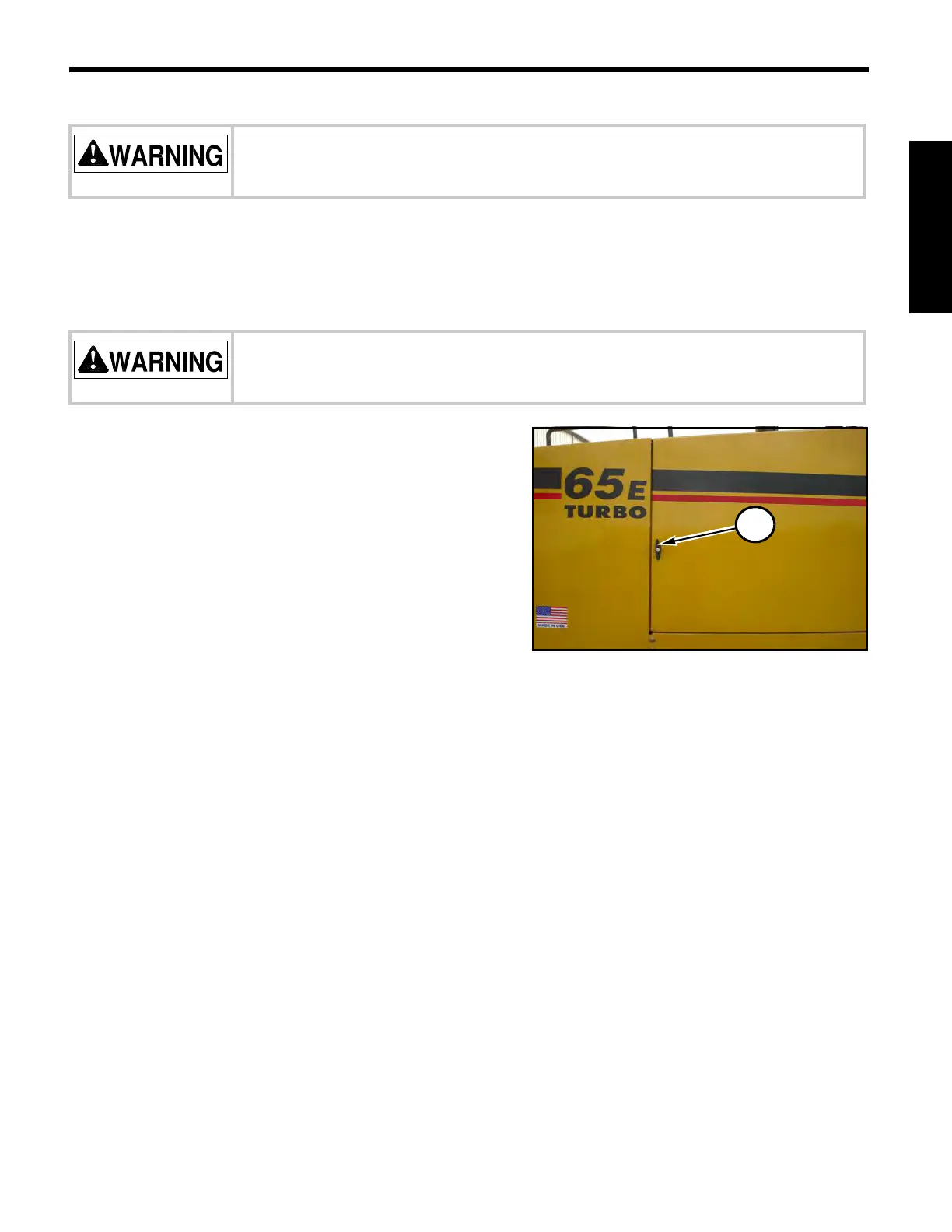 DO NOT operate motor grader with engine enclosure removed or access doors
