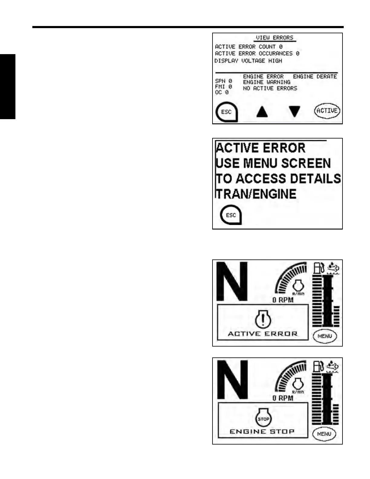 The Active Engine Error Screen will be displayed when an