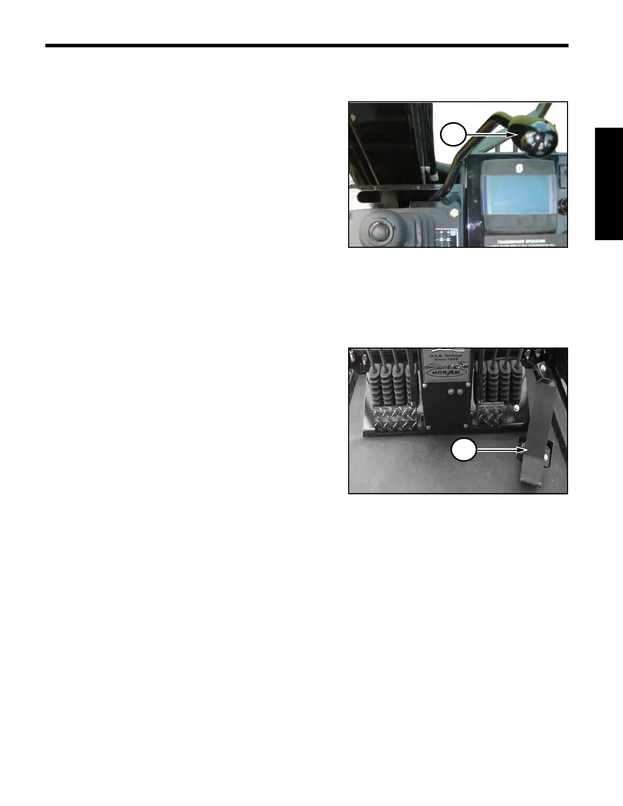 Engine speed is set using the Throttle Control Lever (1)