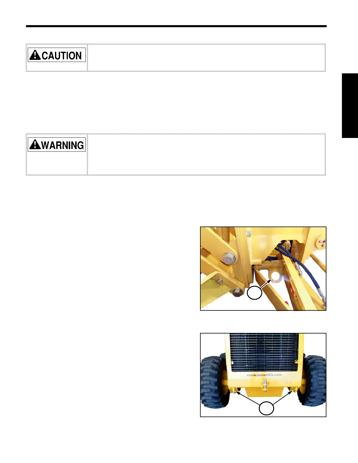 NOTICE: DO NOT tow motor grader faster than 5 mph (8 kph). DO NOT tow motor grader farther than 6