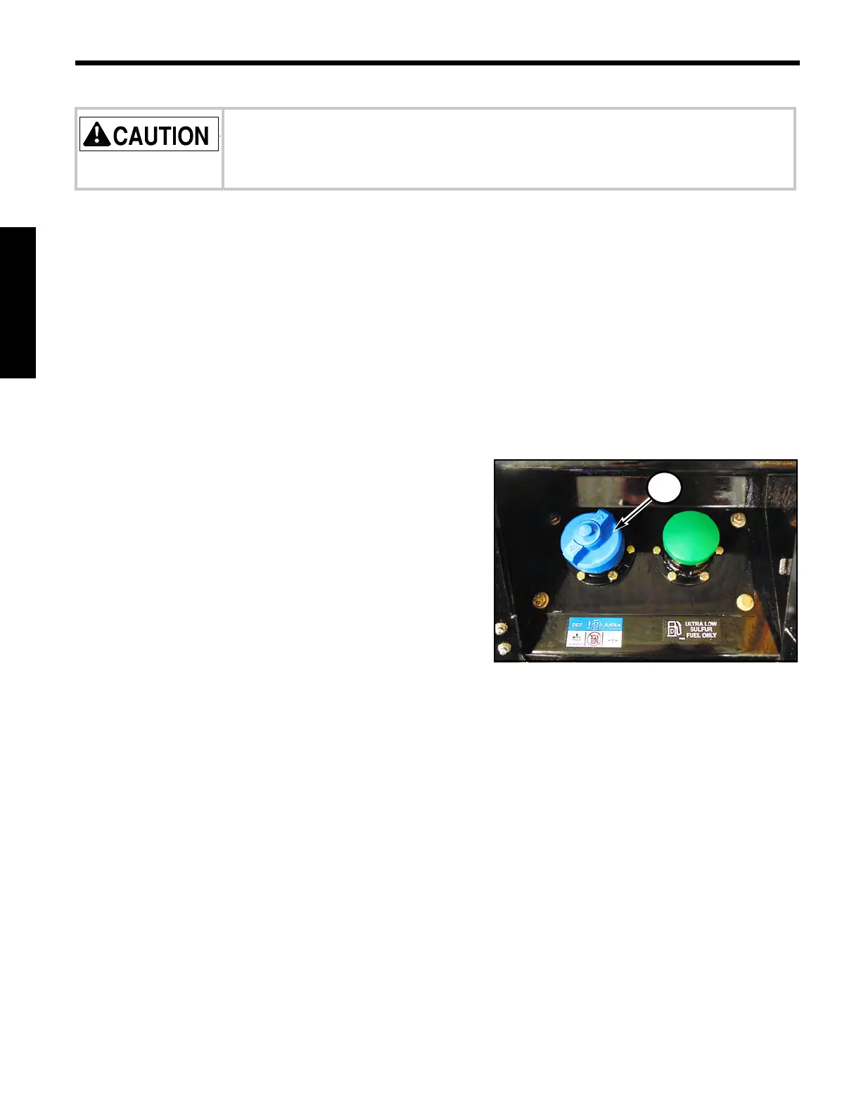 running. Spilling DEF onto hot components may cause the release of ammonia