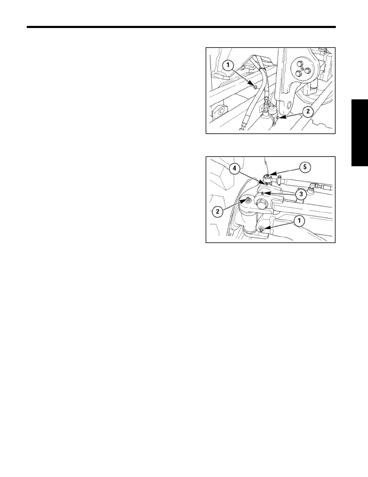 One fitting (2) on each end of steering cylinder. 2-4 shots