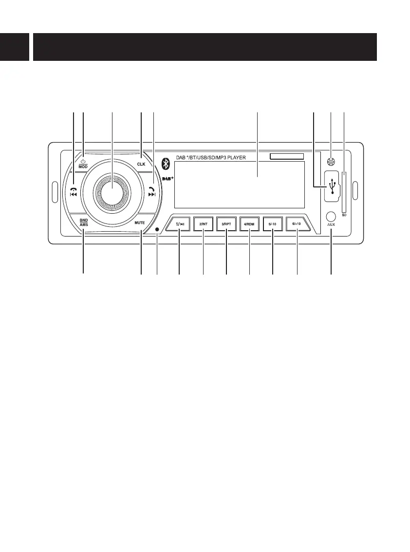 C Control de volumen / Ajuste de audio / Botón de función PTY