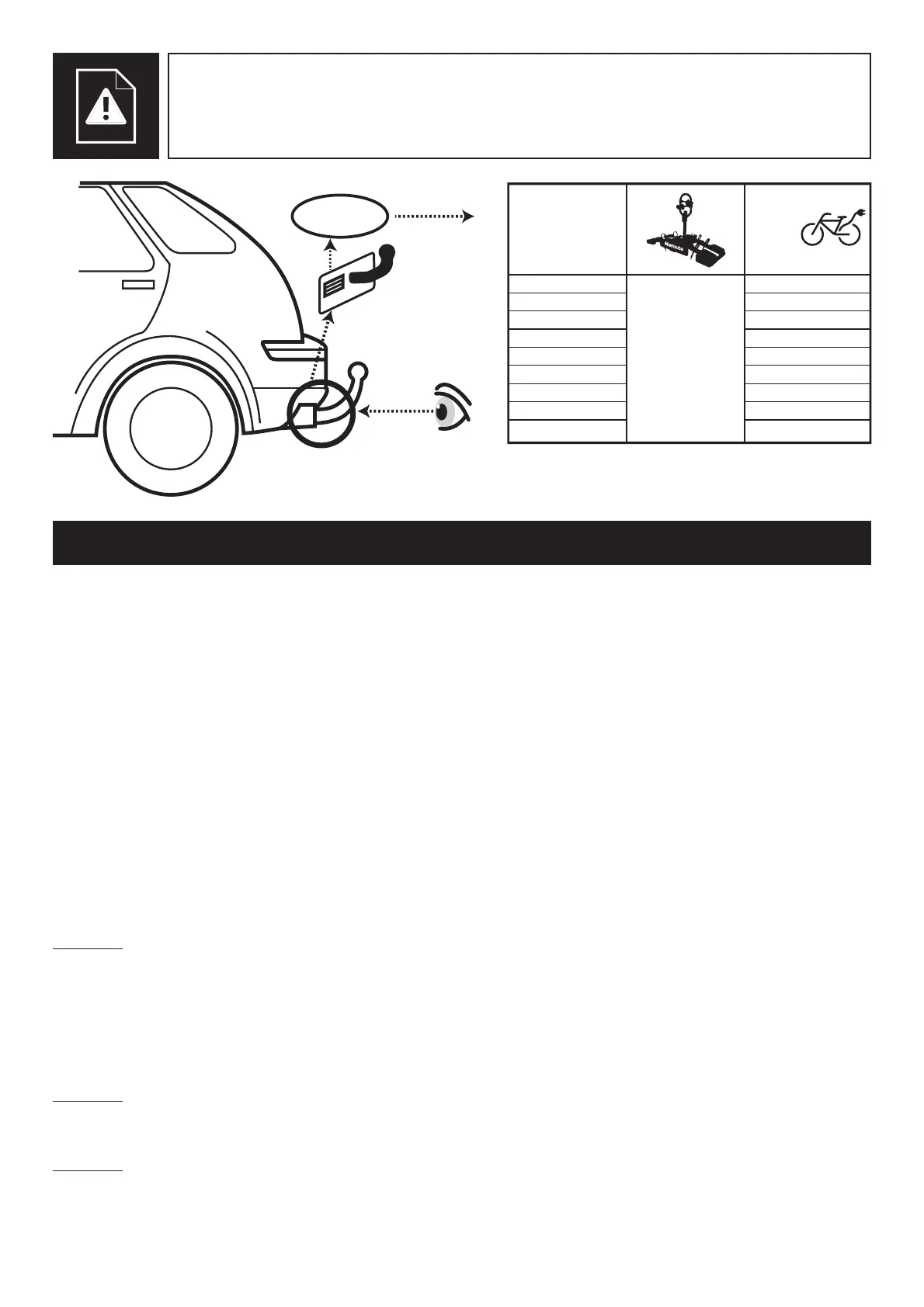 - Avant le montage du porte-vélos, s’assurer de la compatibilité du montage avec votre véhicule. En cas de doutes, demandez conseil à