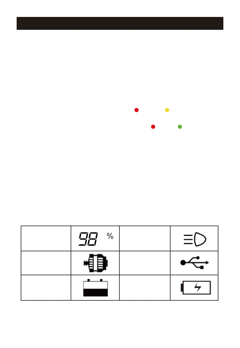 - The LCD displays the percentage of charge of the internal battery of the device.