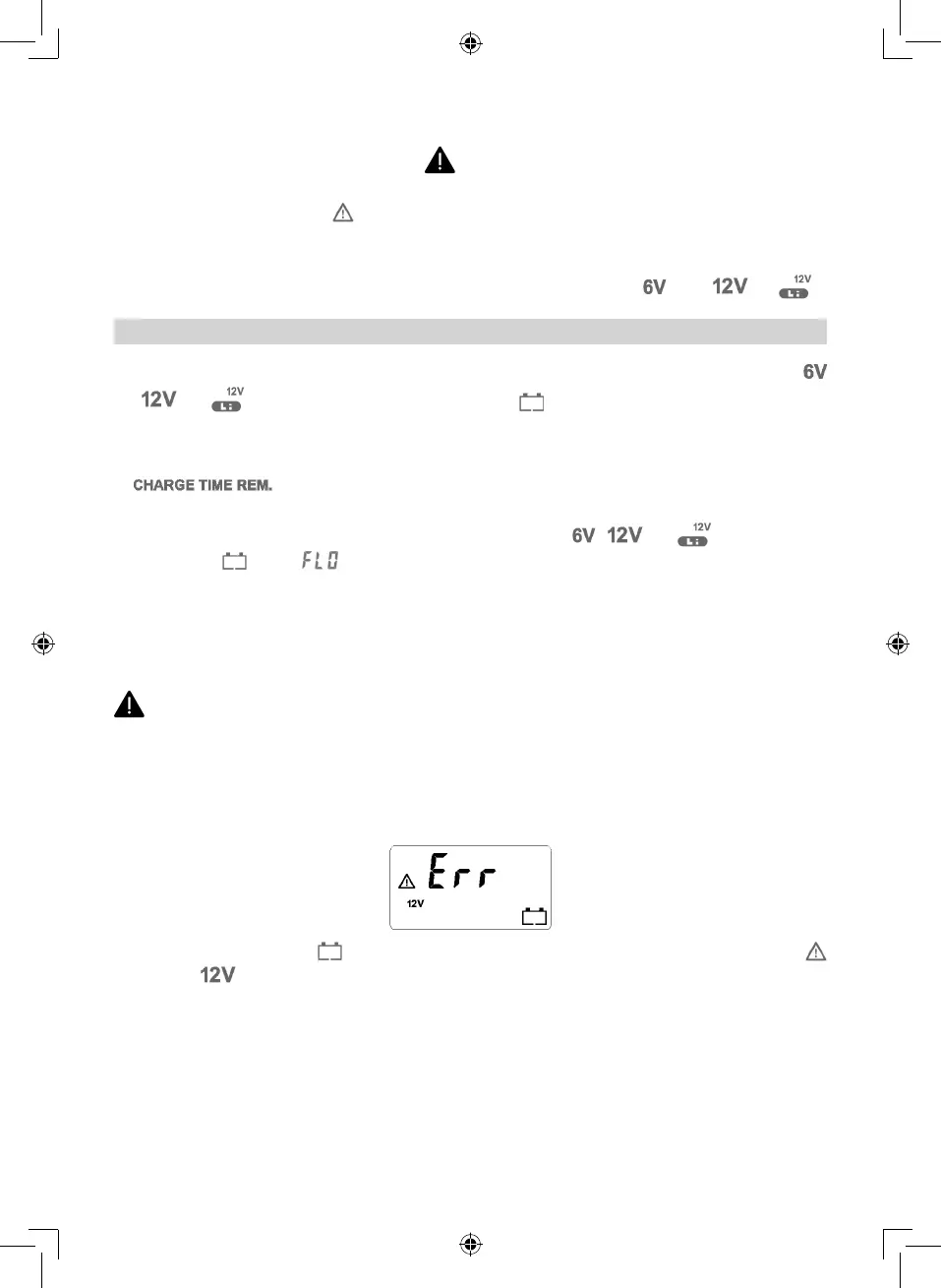 Jeżeli wybrane jest napięcie ładowania 6 V, ale akumulator ma napięcie 12 V i wewnętrzne zwarcie,