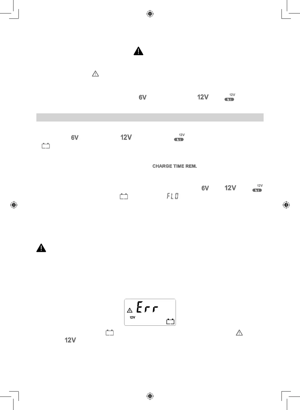 Wenn der 12V-Lademodus gewählt wurde, es sich jedoch um eine 6V-Batterie handelt, zeigt das