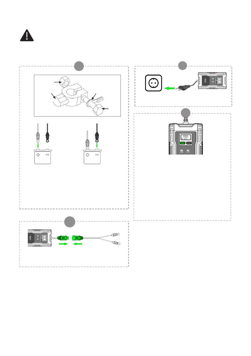 batterijlader uit het stopcontact halen. Koppel de batterijklemmen los van het apparaat bij