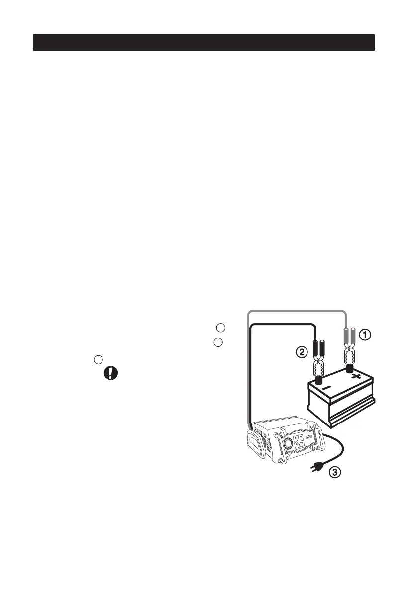 Подключить кабели зажимов к ЗУ.