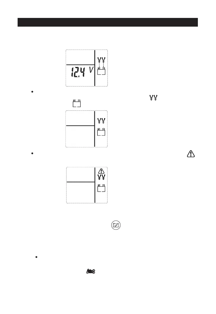et les icones “+” et “–” à l’intérieur de la batterie vont clignoter à l’écran :